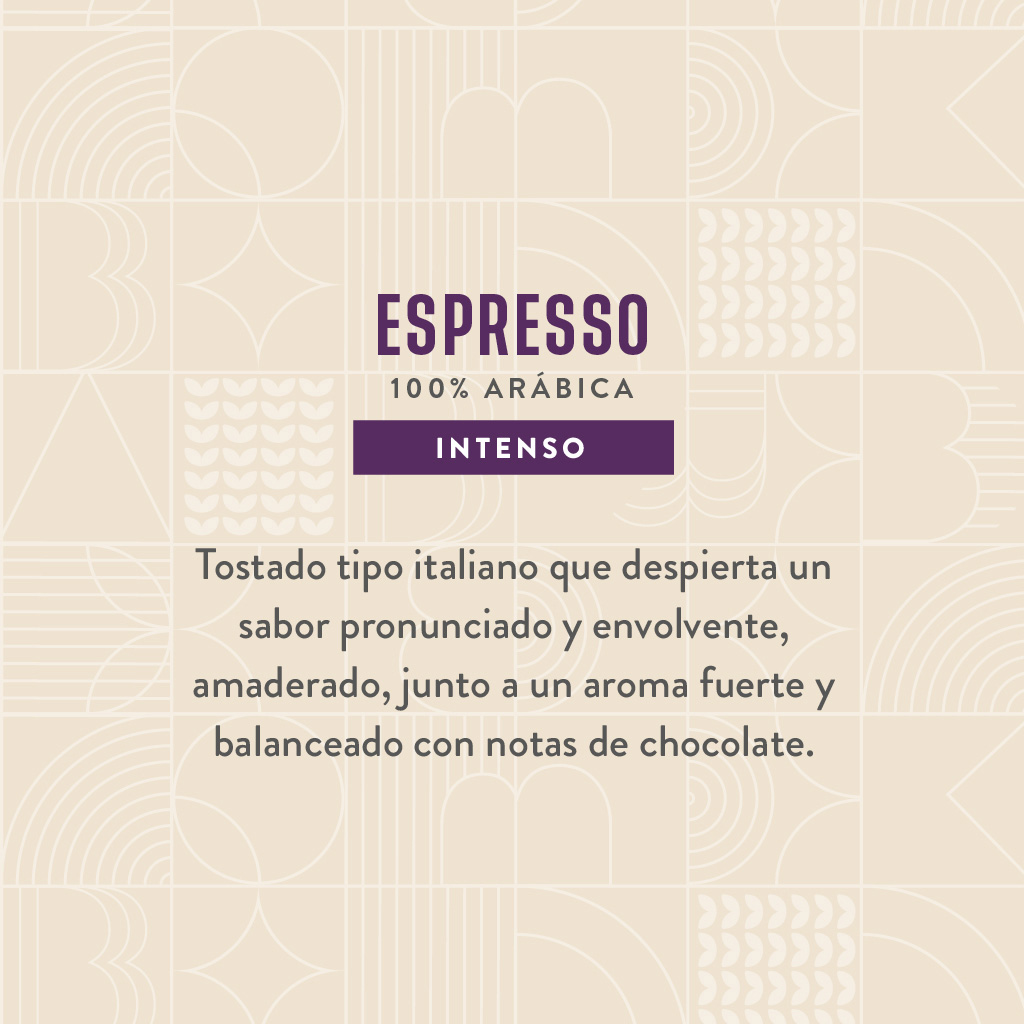 Tostado tipo italiano que despierta un sabor pronunciado y envolvente, amaderado, junto a un aroma fuerte y balanceado con notas de chocolate.