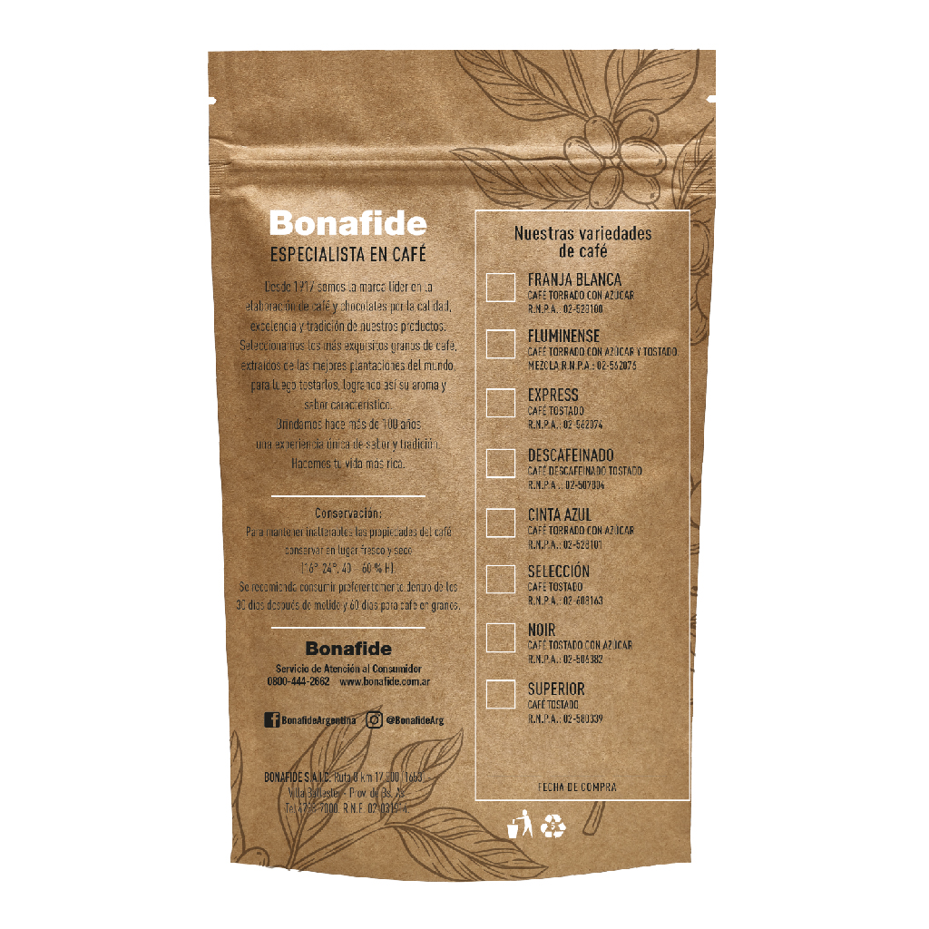Blend de Colombia y Brasil con un tostado natural tipo italiano y un torrado español. Sabor fino, fuerte y natural con un aroma fino, pronunciado y fuerte. Ideal para tomar solo o con leche.